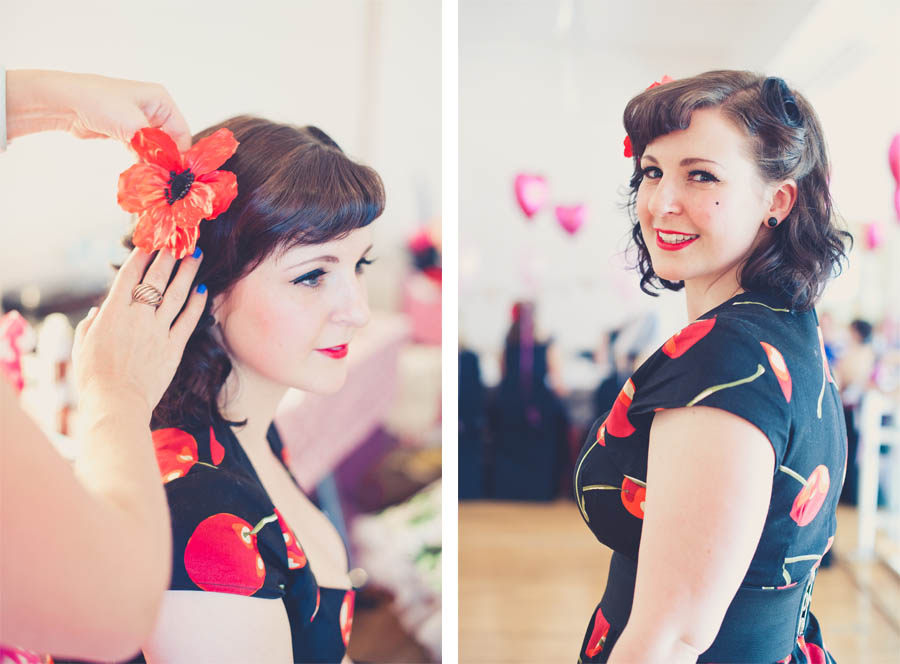 A couple of weeks ago I responded to a request from a friend to take a few promotional pictures for half an hour at an event she was doing. I knew that Tallulah's Vintage Salon was in the business of doing vintage make-overs, what I didn't realise was that the event in question wasn't a public market but was Charlotte's hen do and that all the guests were dressed in 50's attire ready to have the hair and make-up done in time for a Charleston lesson. My boy-shorts, t-shirt and flip-flops felt a bit out of place!